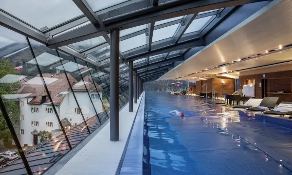 Great hotel Staff friendly and efficient Lovely breakfast Huge pool Enjoyed the 15 minute walk in and out of town to dinner every night Transit service from the hotel to the ski lifts and back was excellent Never managed to try the non textile sauna area…..