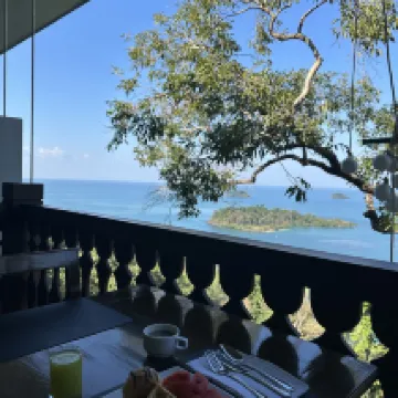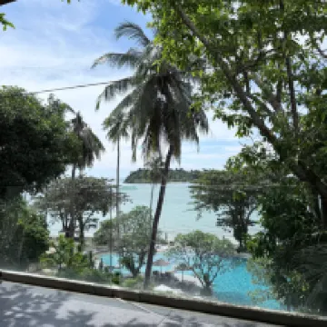Stunning place, incredible balcony onto the beach and amazing food selection. Serene and just stunning. Highly recommended. Need to get a taxi into town but upside is quiet seclusion. Taxi truck is 50-100 baht pp each way.