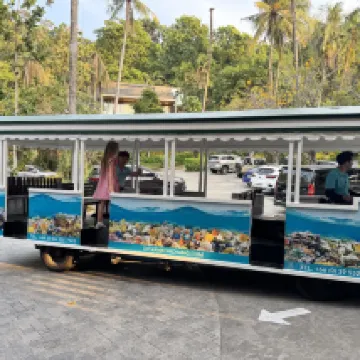 The hotel is wonderful, the staff are friendly, helpful, and responsive around the clock. The jungle is fun, and there are chickens that children enjoy watching. You can see hornbills in the trees. You can see monkeys and macaques and enjoy the beautiful beach and pools. There is a cable car that takes you there. A shuttle service is available to and from the hotel. A free shuttle to the center is available at certain times. We enjoyed our stay there, and the breakfast is delicious, varied, and comprehensive.