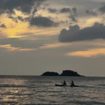 The hotel has its own private beach, which offered a lovely spot to watch the sunset. We rented a kayak for 200 baht per hour and paddled to the small island across from the hotel, where we discovered even clearer water and white sand.
