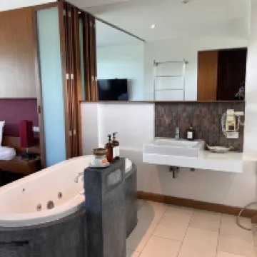 Wonderful, luxurious, huge room! 50 sq m is amazing! Sunrise view. A little noisy since my room faced the road, but I slept with earplugs and it was perfectly fine. The pool is clean, and there's even essential oil for the bath 💜