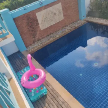Excellent guesthouse, two swimming pools, and everything you need nearby if you rent a scooter. It's a bit far to walk though. Everything is fresh and clean.