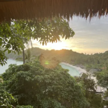 The beach this hotel is on is incredible and a must-see in Koh Tao. The hotel itself is great, but it has limited connections to other restaurants, which they exploit by charging 20 euros for dishes (which is far too expensive for Thailand). You can't easily go eat elsewhere without a motorbike. If you're considering walking, it's a 30-minute trek with terrible hills.