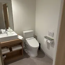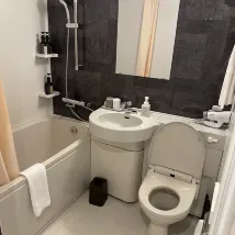 The toilet and sink are spacious, easy to use, and comfortable! The toilet is separate from the bathroom, which is also spacious, and the bathtub is large enough, so I felt like I was at home.