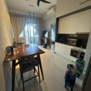 Pros: staffs are friendly and approachable. Instructions were concise and clear, before and during our stay. We stayed at level 15, place is clean, and I love the balcony. There were 2 bottles of water, and slippers provided as well.. Near to everything, the mall just few steps away from our place and there’s food stall every where , 7-11 beside the building as well