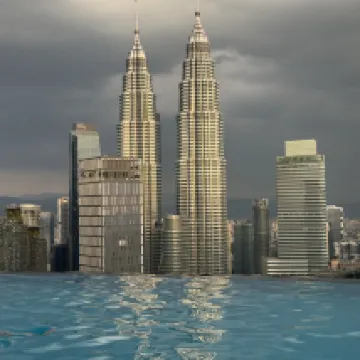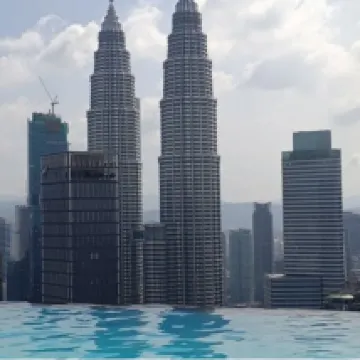 The view from the swimming pool is spectacular, with a clear view of both KLCC and the KL Tower.