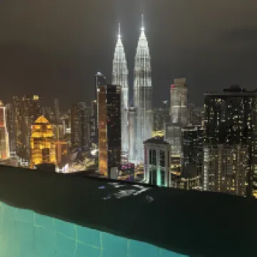 Just imagine, you’re checking in to a very affordable hotel, this is your view & your room! Plus vv accessible, it’s just a walking distance going to KLCC & Petronas tower! Staff are very responsive -I requested a bottled water at 12:00 am after 5 mins one of the staff knocked on my door to give me bottled water! The infinity pool is 💯!! But just a heads up to future costumers, they will require you a deposit of 500RM (150sgd) buuut it’s okay because it’s the part of their policy and it will refunded once you check out 👌🏻 Highly recommended! Thank you Platinum 2 KL by HOLMA! ❤️