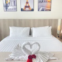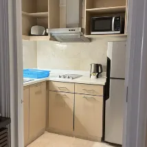 The check-in process was smooth, and the staff were very friendly. The bedroom was spacious and included a mini kitchen, a sofa, a dining table, and two TVs. The bathroom had a bathtub, but the wall tiles looked old and need replacement. Other than that, everything was good.