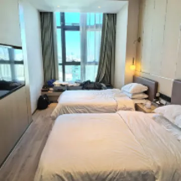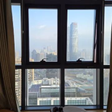 The room was clean and tidy, and the staff were very warm and attentive. It's a two-story loft, with a 1.8m king-size bed upstairs and a long platform bed, about 1.2m wide and an impressive 2.5m long, which could easily sleep two children. The view is great. It's located on the 29th and 30th floors of a commercial-residential building, which houses about four hotels. There's a convenient store downstairs, which is very handy. It's easy to catch a taxi on the street in front of the building; the easiest way to pinpoint the location is by setting your GPS to 'Runcheng Convenience Store,' as navigating directly to the hotel can be tricky. The breakfast was quite good, clean, tidy, and standard, offering a good mix of both Western and Chinese options.