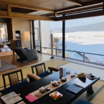The room faced Lake Akan, offering a fantastic view. During check-in, the staff provided pudding and tea. They also inquired about the departure bus time, as well as the dinner and breakfast times. They then gave a detailed explanation of the lobby and room facilities, very attentively. Dinner was a kaiseki meal, quite sumptuous. Breakfast was also served in a private room, which was quieter. The service was excellent. The only downside was that the room's light switches were a bit old and slow to respond.