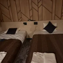 Uf, I stayed here cause no other affordable place was available. Bad price quality ratio. Very smelly carpet and bathroom, lack of ventilation, wc dropping water and fridge very noisy, very bad lighting. Table packed with stuff we are not going to use as microwave, tv, heater...but no room for personal use. The twin bed room size is big, but still smelly. It seems they haven't updated the hotel for 50 years.