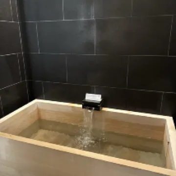 Booked the Round bathtub room. Room was well designed & had a great time soaking in the Hiba wood bathtub. Enjoyed the pretty water light reflection on the ceiling while soaking the stress away. Really loved the woody scent of their shampoo/body wash that I bought a bottle home with me! Really enjoyed the traditional atmosphere & machiya front desk of the hotel as well. The 5-7mins walk (almost 2-3 street intersections) to the nearest metro station (Karasuma Oike) was worth it to make it to this beautiful hotel. Will be coming back to stay again!