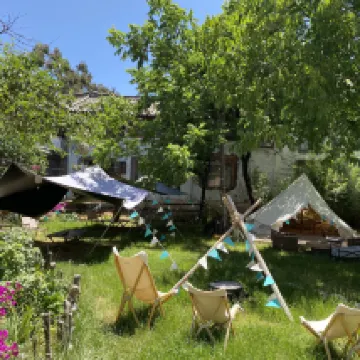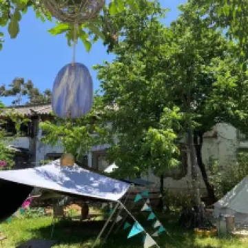 The environment is good, there is a small lawn, which is a big highlight. It is very comfortable to sit under the tent after the rain. The room is a wooden house, which is very unique. There are many places to eat nearby. The store recommended some snacks, which are all very good.