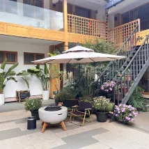 The hotel's location is fantastic. I really enjoyed the courtyard design; sitting there, I felt like I could truly escape and relax. The room was very clean and spacious, ensuring a super comfortable stay. The owner was incredibly kind as well. They even drove us to our next destination, and when it started raining, they thoughtfully gave us two umbrellas!