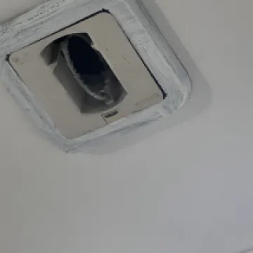 INTERUPTEUR POUR LA LUMIERE DE LA SALLE DE BAIN DEBOITE, IL PENDAIT, AVEC FILS ELECTRIQUES APPARENTS