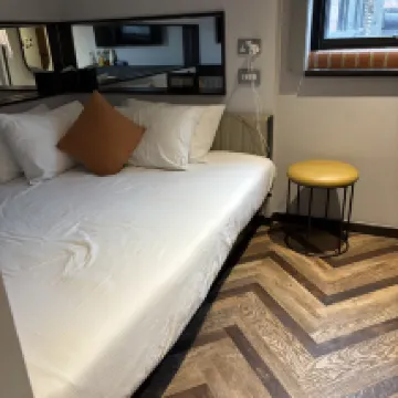 The hotel environment is nice, with convenient transportation. The staff are friendly, and the hotel is clean and hygienic. The lighting is moderate, and the air conditioning is cool enough. (There's a window, so the sunlight is comfortable). I'm quite satisfied with the cleanliness. The mattress is firm but not sticky. The blankets are soft and comfortable against the skin. There are no unpleasant odors in the room. There's no dust on the table. Hot water comes quickly, and the water pressure is stable. The facilities are well-maintained.