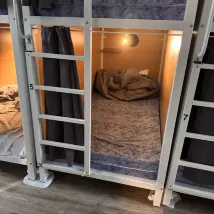 I really enjoyed my stay at the hostel. I was in a 12-bed dorm, but the capsule-style beds offered both seclusion and privacy. Having two spotless bathrooms for the room was a big plus. The hostel itself is very clean, the kitchen is well-equipped and comfortable, and the Wi-Fi works flawlessly.