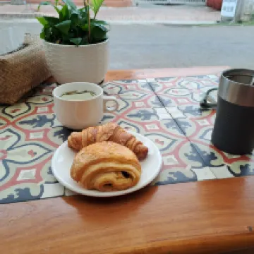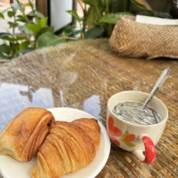 The breakfast was modest but satisfying, with croissants, fresh fruit, tea, and coffee—a simple but pleasant way to start the day.