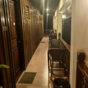 The hotel's location is excellent. It's about a 7-minute walk to the night market (or 'foreigner street' as it's sometimes called) and just a minute's walk to the Mekong River. Around 6:30 AM, monks pass by for alms giving, and you can participate right outside the hotel entrance. The hotel has a minimalist style and doesn't provide slippers, toothbrushes, or toothpaste. Shampoo comes in travel-sized sachets along with small bars of soap. A car ride from the hotel to the airport for two people costs 150,000 Kip for the drop-off service.
