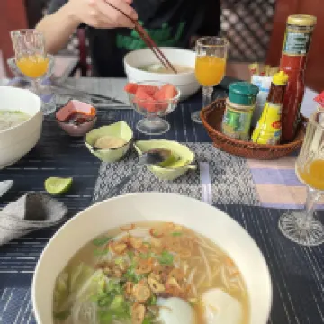 This is one of my favourite hotels in Southeast Asia. The staff are incredibly welcoming and helpful going above and beyond in anyway they can. You’re able to use the bicycles from the hotel free of charge as well as rent motorbikes if needed. The room is incredibly clean and comfortable with no ants or mosquitos in sight (even when leaving food out). The shower is large with hot water and strong pressure. They provide a dental kit (toothbrush / toothpaste), soap, shampoo and body wash which is all high quality stuff. The breakfast provided is an 11/10 with coffee, tea, juice and a range of options to eat including pancakes, omelettes, rice dishes and more. You will also get a small bowl of fruit and a great view of the river. There is some construction going on at the moment in the river adjacent to the hotel, but I slept through it no problem and my girlfriend didn’t hear a thing with her ear plugs in. I will definitely stay here again if I am ever back in the area.