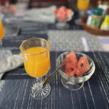 The location on the banks of the Nan Khan in a quiet part of Luang Prabang was idyllic and to have breakfast served on the bank of the river watching the boats go by was a highlight of our day. The breakfast menu was extensive and imaginative backed up be superb food cooked really well.