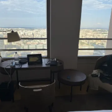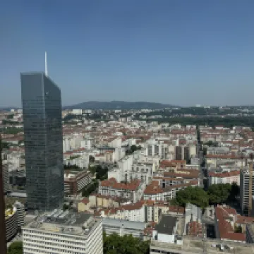 Very pleasant and efficient staff, well located next to the Part Dieu train station, superb view of the city from the top floor of the hotel