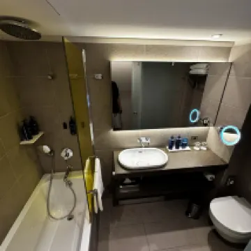 The hotel is at 33rd floor of a high-rise building and quite close to the train station. There are such nice views from the room, as a chain hotel the amnities are quite good but would have wanted a proper coffee machine. The bed and the linens are confortable and soft. The room was quite clean.