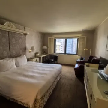 The exterior and the beautiful lobby create an illusion of style, but as soon as you open the door, the entire room has a 'fusty old smell.' It's old and unclean, and the central air conditioning can't even be adjusted. I stayed in room 513 – can you believe that in this day and age, half the TV screen is static ❄️? I paid over 600 for this room!