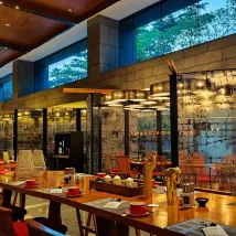 A modern hotel with five-star service. The breakfast is very good and the atrium is beautiful!