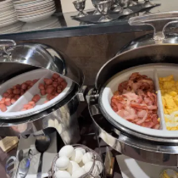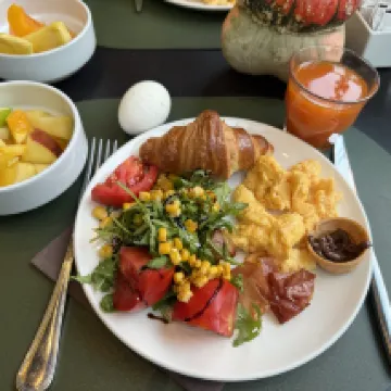 The hotel's location is excellent, just a 5-minute walk to the central station, making train travel very convenient. The airport train also stops at the station, taking about 40 minutes. The shuttle bus to the outlet mall is also nearby. The hotel breakfast is quite generous, and there's a church right across from the breakfast room.