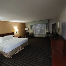 Hotel is conveniently located with free bus shuttle transfer from Toronto Pearson airport and hotel. Bus shuttle will be at this airport at every quarter before and after every hour. Bus shuttle also send customers to airport to take GO express subway. Hotel staff is professional, helpful and polite. The hotel has a pub and a restaurant. The restaurant serves great food such as poutine, pizza, fried chicken wings etc. Room is spacious, provides small coffee maker, however no slipper or bottled mineral water are provided. However, at lobby there is 24x7 coffee, tea and hot water for guests. Breakfast was good and starts at 6.30am. However, no early breakfast packing offered for those leaving early before breakfast time. Breakfast is provided as complimentary to all guests.