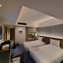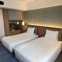 The room was spacious, and the staff spoke English and were very helpful. Despite being located in the busiest part of Naha, the room was relatively quiet, allowing us to sleep well. To my surprise, the mini bar was complimentary.