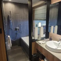 What I loved the most was the bathroom design—it featured a modern standing shower instead of just a bathtub, which I personally preferred. The room itself was spacious, stylish, and very comfortable.