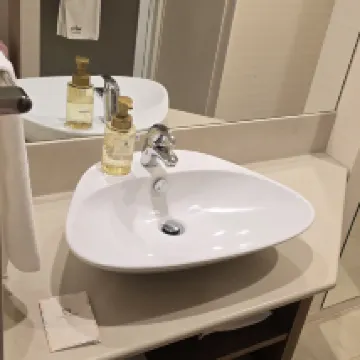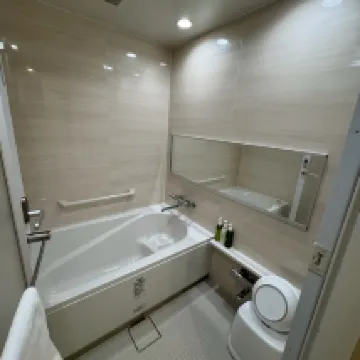 The room was clean. Two adults and two children stayed in a twin room; we pushed the beds together to create a very large sleeping area. The bathroom was convenient for showering, offering both a bathtub and a separate, quite spacious shower, almost like those found in a public bathhouse.