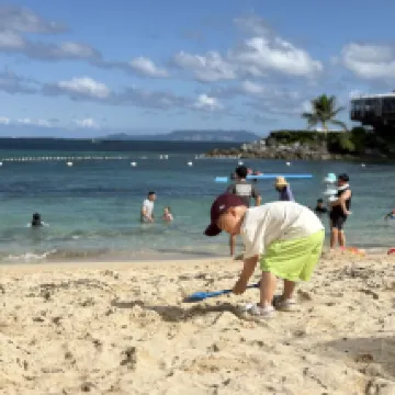 The rooms at Renaissance Hotel are quite spacious, definitely on a different level compared to the hotels we stayed at later in Naha city. Plus, there's a balcony with an ocean view; my son loved sitting on the lounge chair there, watching the scenery. The hotel also offers a wide range of activities; we participated in the Happy Dolphin and sea turtle care programs. My baby had an absolute blast and got to interact with the dolphins up close. Highly recommend!