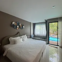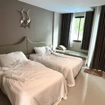 The bed is big, not too soft, sleep comfortably. The air conditioner is cool. The bathroom is clearly separated from the shower room. It is quiet and private. The restaurant provides breakfast. The price includes breakfast. Parking is convenient. The room is right next to the swimming pool. There are swimming suits for rent.