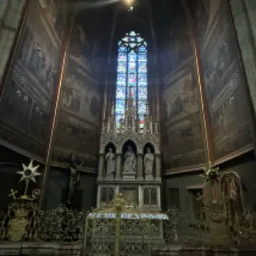 It is about a 15-minute walk from the train station, and it is not far to walk around.