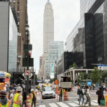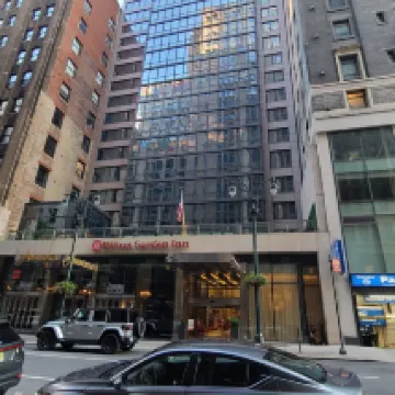 The hotel is ideally located in Midtown Manhattan. We traveled to New York by train from Washington D.C., and it's about a 15-minute walk from Penn Station. It's also very close to Fifth Avenue and the Empire State Building. For exploring downtown attractions like Wall Street or uptown areas such as Central Park, the subway is definitely your best bet – I wouldn't recommend taking a taxi.