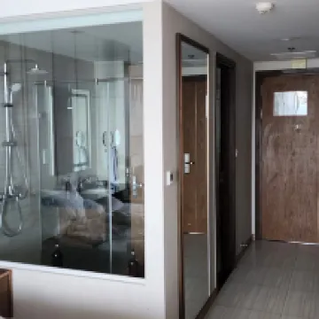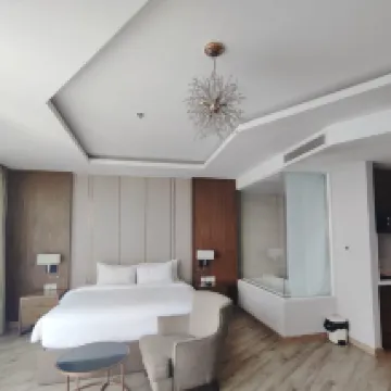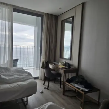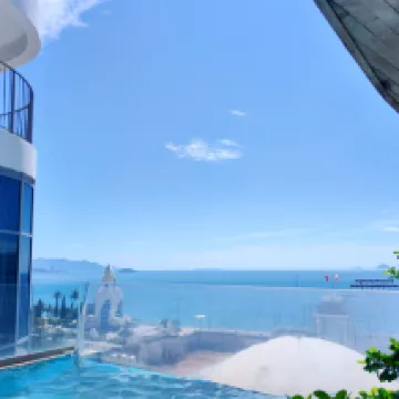 The hotel is super, the first coastline, we had a view of the sea just gorgeous, were above the 20th floor, the view is mesmerizing, the rooms are good, the price is very pleasant 😊 there is a swimming pool on the roof, entrance is paid 150, on the 6th it is free for vacationers. I liked everything, the hotel itself is located right in the center of Nha Trang 👍