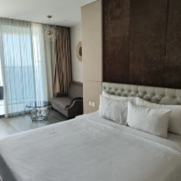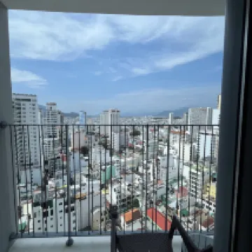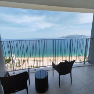 The only thing I liked was the view from the room and the proximity to the beach. The rooms are very tired, the doors are broken, the walls are shabby, the air conditioner only worked properly at night, the pressure in the shower barely drips, the cookware is one saucepan without a lid with two containers for steaming and a bunch of chopsticks. 4th time in Nha Trang and this is the only hotel where there were cockroaches. I booked a room with a king size bed, they put two beds together for us, in the middle of the night you fall into a hole in the middle. A separate entertainment is to take the elevator to your floor or to the first floor, you can wait for 10-15 minutes, and on the way there are packed guests from China, all in wet clothes from the pool. The representative of the company that rents out the apartments ignored requests, asked for two cups for tea and coffee, since there are only 2 glass glasses in the room, after 3 days he replied that you already have glasses. Cleaning depends on the team, one cleaned well and replenished tea, coffee, water, changed towels, another persistently broke into the room at 08.15 and said that no one would come later, took away the trash and ran away so as not to wash or change anything.