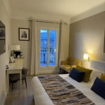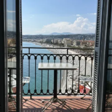 This is a great hotel. Although the facilities are not so advanced, it is very clean. Nice is so beautiful on a sunny day. You can see the Bay of Angels from the room. The guy at the front desk is very gentle, and there are service staff to help with luggage. I will go there again.