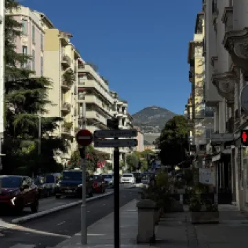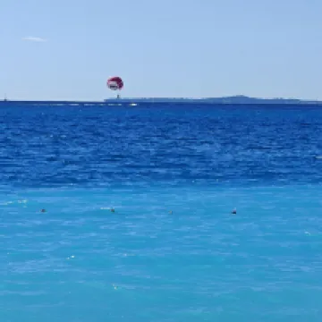 The hotel is located near a tram stop, just a ten-minute walk from the airport, making it conveniently located, although the tram noise makes it a bit noisy. The rooms offer a partial sea view, and the beach is just a short walk across the street, perfect for watching the sunrise. There's a breakfast shop opposite the hotel, and Italian and Portuguese restaurants nearby. A Carrefour supermarket is one tram stop away from the airport.