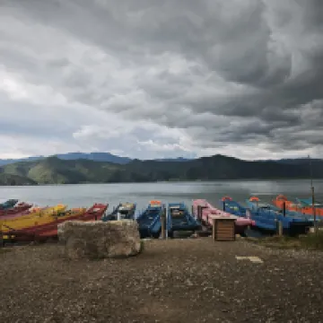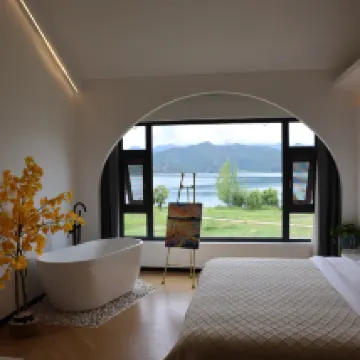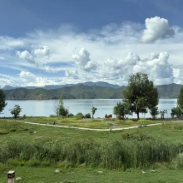 Jawapan daripada Pihak Penginapan: Dear guest, thank you for your support of Yinman! Located in Lugu Village, Yinman offers a breathtaking lake view. Just outside the door is Lugu Lake, allowing you to watch the sunrise on your right and the sunset on your left. There are many dining options nearby, and it's 100 meters from Langfang Pier, making it convenient for taking a pig trough boat. The camping-style courtyard is a popular check-in spot for internet celebrities! We welcome you to stay here again! We wish you all the best and a pleasant journey.