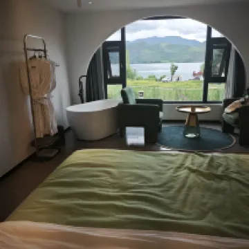 A very amazing hotel. The rooms are very stylish and the owner is very nice. He took us to watch the stars and take photos by the lake at night.