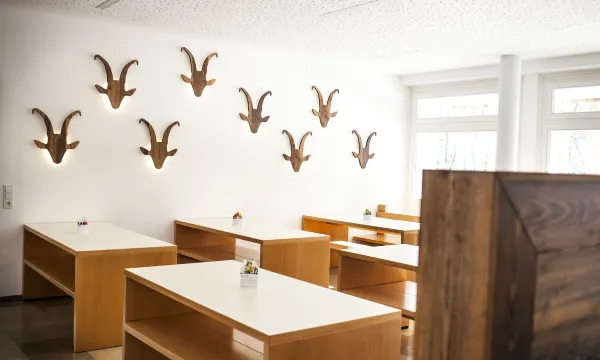 Wir waren mit einer Schülergruppe in der Jugendherberge untergebracht. Das Personal an der Rezeption war sehr freundlich und hilfsbereit. Leider kann ich das über das Küchenpersonal nicht sagen. Man durfte sich um 07:25h nicht einmal eine Tasse aus der Küche holen, um sich einen eigenen Kaffee auf dem Zimmer zu machen. Man wurde sofort vom Küchenchef zurechtgewiesen, in einem sehr barschen Ton. Dafür durfte aber der Gruppenleiter der bayerischen Reisegruppe den Kaffee bereits früher holen. Naja, die Stammkunden (derjenige, der seit 15 Jahren dort schon ein- und ausgeht hat ja auch in seiner 5*-Rezension bei Google sein Vorrecht auf diverse Sonderbehandlungen gesichert ;-) scheinen ja Privilegien zu haben. Das Haus war voll mit schreienden 5. Klässlern, die auch im Essensraum rennen und auf die Sitzbänke raufklettern durften. Weder Lehrer, noch das sonst gegenüber Berlinern so strenge Küchenpersonal hat hier durchgegriffen. Am Abreisetag hat unsere Gruppe auch keine Pfannenkuchen bekommen, die wurden ausschließlich an die "Stammkundschaft" herausgegeben. Die guten Bewertungen auf Google kann ich nicht nachvollziehen. Alle negativen Bewertungen wurden systematisch aus Google entfernt. Ich habe im Laufe der Jahre schon so einige Jugendherbergen gesehen und kann die 5 Sterne für's Essen beim besten Willen nicht nachvollziehen. Zum Abendessen gibt es nur ein Gericht (Kartoffeln, Reis, Nudeln) und ab und zu Fleisch. Es ist absolut billig gehalten. Einmal gab es Gemüsepatties, leider aus der Tiefkühltruhe. Das "Salatbuffet" ist absolut dürftig gestaltet. Ich muss sagen, die anderen Jugendherbergen bieten gesünderes und vielfältigeres Essen an. Die Schüler mussten ein Gemeinschaftsbad nutzen, das wurde allerdings als "eigenes Bad über den Flur" beworben. Es sind einfache Wasch- und Klozellen in einem Gemeinschaftsbad, die mit den Zimmerschlüsseln verschlossen werden können. Summa summarum, nie wieder Jgh Oberammergau. Kommt einfach stattdessen alle nach Berlin. Hier gibt es Döner für alle, Brot, Gemüse, Fleisch und geile Soßen.
