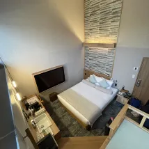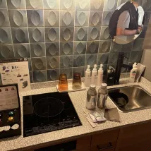 The room is bigger than expected, the high roof is beautiful, the hotel design and color scheme is very good, it is the toilet sink and kitchen sink is the same, overlapping positions get not too good to use, dim lighting. Everything else was good, excellent location, right upstairs from JR and bus station, very convenient, staff were very helpful. However, sleep easy to wake up people do not book, JR walk through is going to be noisy ga!