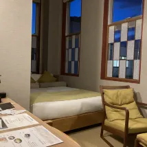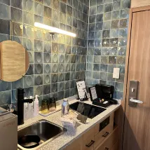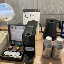 Fantastic room with amazing and brand new decoration. Hotel was opened in July of 2022 and the facilities are just amazing, and in excellent conditions. The staff is extremely professional , very attentive , communicating in English. The location is very privileged, just above the Onomichi train station. Breakfast is a state of art , with the food coming in a bento in a perfect portion. There are capsule coffee in the room . Onsen is extra 2500 yen for one hour . The hotel is just one of the best surprises in my trip and fully worth staying a day or two there. If you want to ride to shimanami kaido this hotel is perfect location.