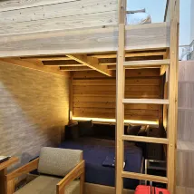 Room with amazing view of train tracks and station. We also enjoyed private sauna. Friendly and helpful staff.