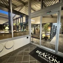 I would like to give a top grade to Beacon hotel.  it is on the second floor of Onomichi station. This time we was upgrade to a very cozy family room. we are very happy to see that is a simple kitchen. We were on bicycle travel from Imabari. Our luggage was sent to the room before we check in. Staffs are all very kind and easy communicate. Only heard one time train pass by after we slept. Bed is large and very comfortable. Very new hotel. Highly recommend!