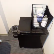 Near station, self service. Plus points can leave your luggage before check in and after check out. Have microwave and elevator